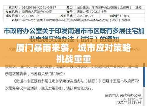 面对突发大暴雨,厦门市政府及相关部门也迅速启动了应急响应,气象部门及时发布预警信息,提醒市民做好防范,相关部门迅速组织人员清理积水,保障交通畅通,政府部门还加强了城市排水系统的建设和管理,提高城市的排涝能力。